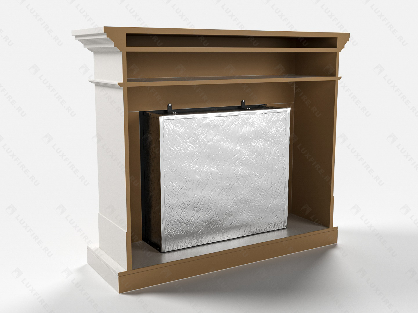 Представляет собой сборную окрашенную конструкцию из МДФ c портальным биокамином Lux Fire "Фаер Бокс 1-26"